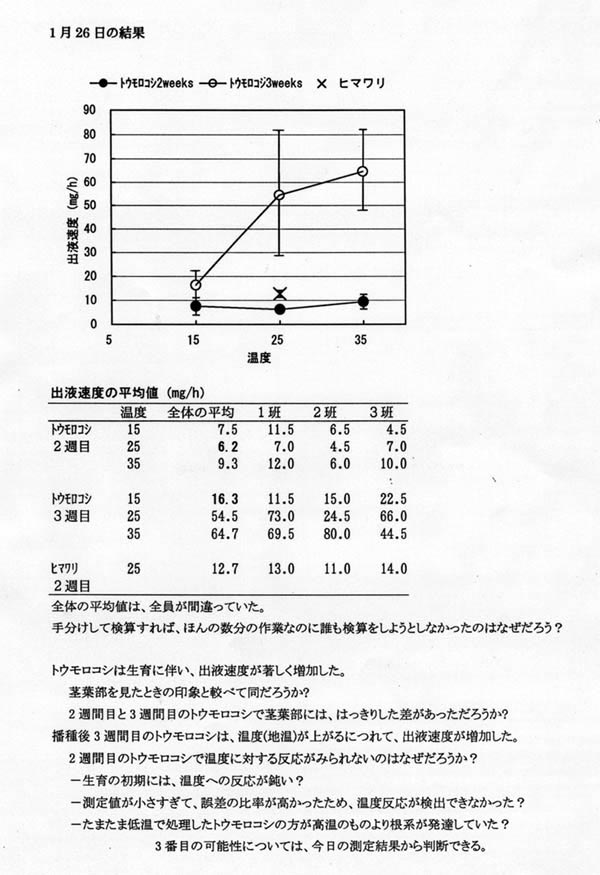 根長と出液速度(1999年1月27日,28日):