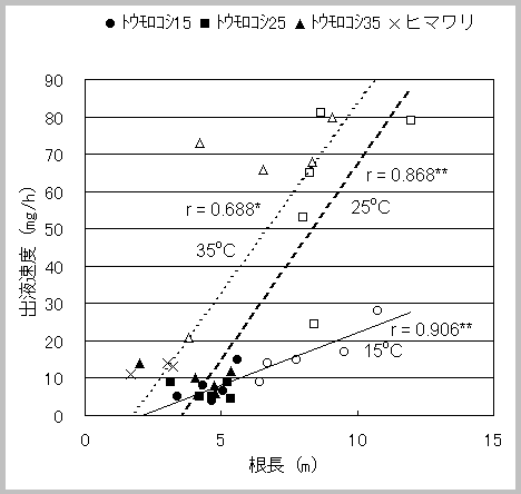 出液速度は、根の量、および、根の活性の双方を反映した指標と考えられる。